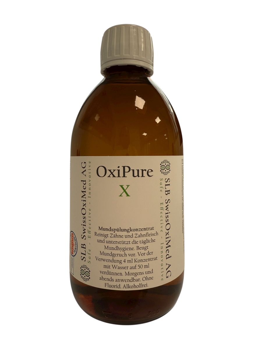 Kontakt mit Kleidung vermeiden, da dauerhafte Flecken entstehen. Lagerung: Nach Anbruch im Kühlschrank lagern, vor Sonnenlicht schützen. Hersteller: SLB SwissOxiMed AG, Gersauerstrasse 76, 6440 Brunnen, Schweiz.